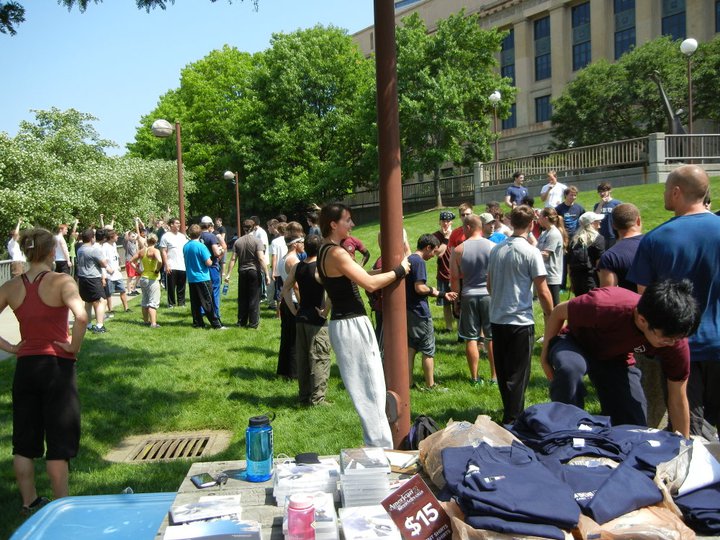One of the requirements for certification is 10 hours of supervised coaching, which we did at American Rendezvous. This was a 3 day event (Saturday to Monday) where over 120 traceurs of all levels descended upon Columbus to learn from and train under coaches from Parkour Generations and the founders of parkour, the Yamakasi. Most of them were within driving distance of Columbus, so there were a lot of people from the East Coast who I haven't had an opportunity to train with too much, and it was refreshing to see so many new faces who were enthusiastic about parkour. We had several intense training sessions including a visit to Hocking Hills State Park, Ohio State University, and the downtown riverfront.